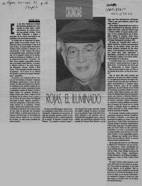 Rojas, el iluminado [artículo] Oscar Vega.