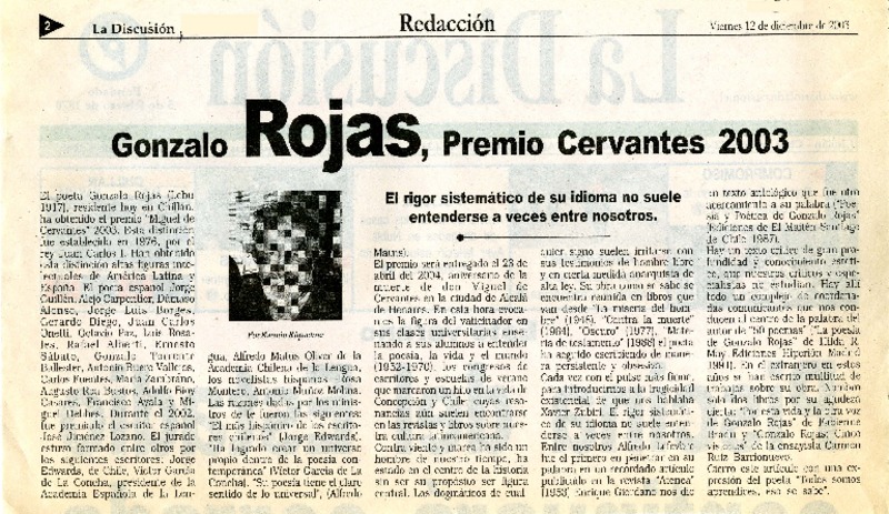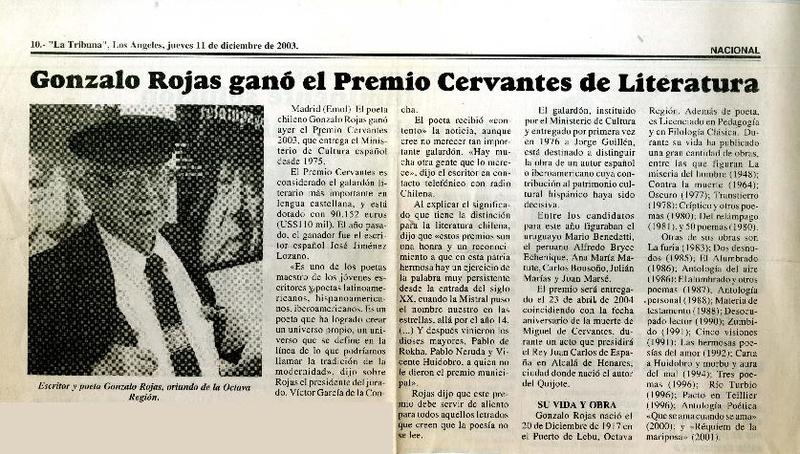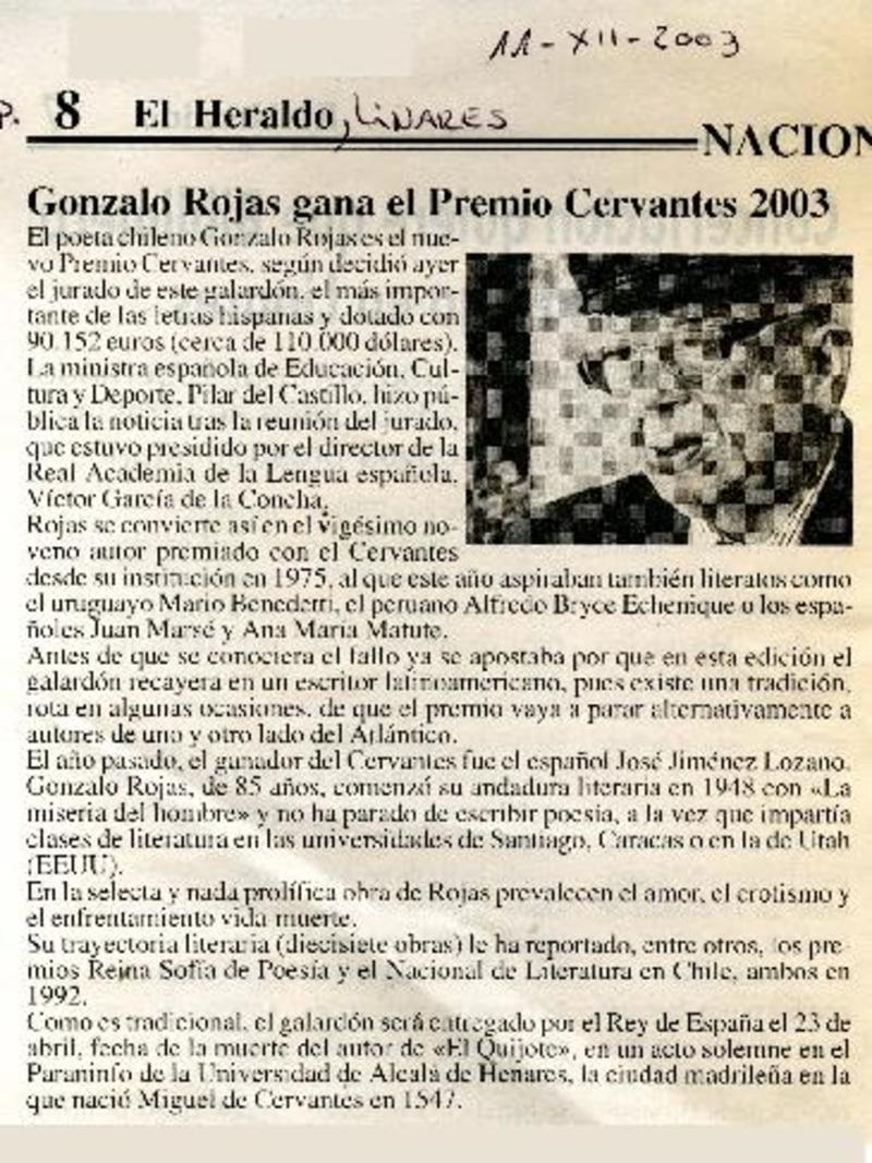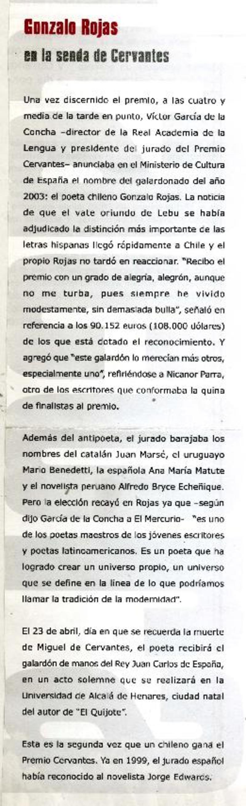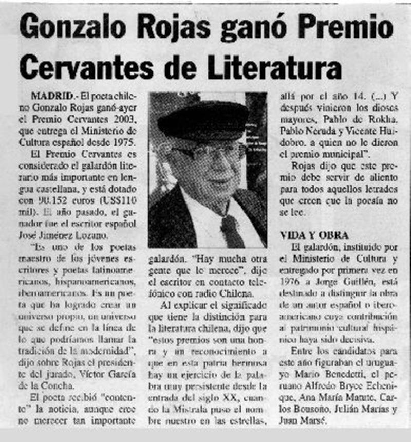 Rojas ganó el Premio Cervantes de Literatura. [artículo]