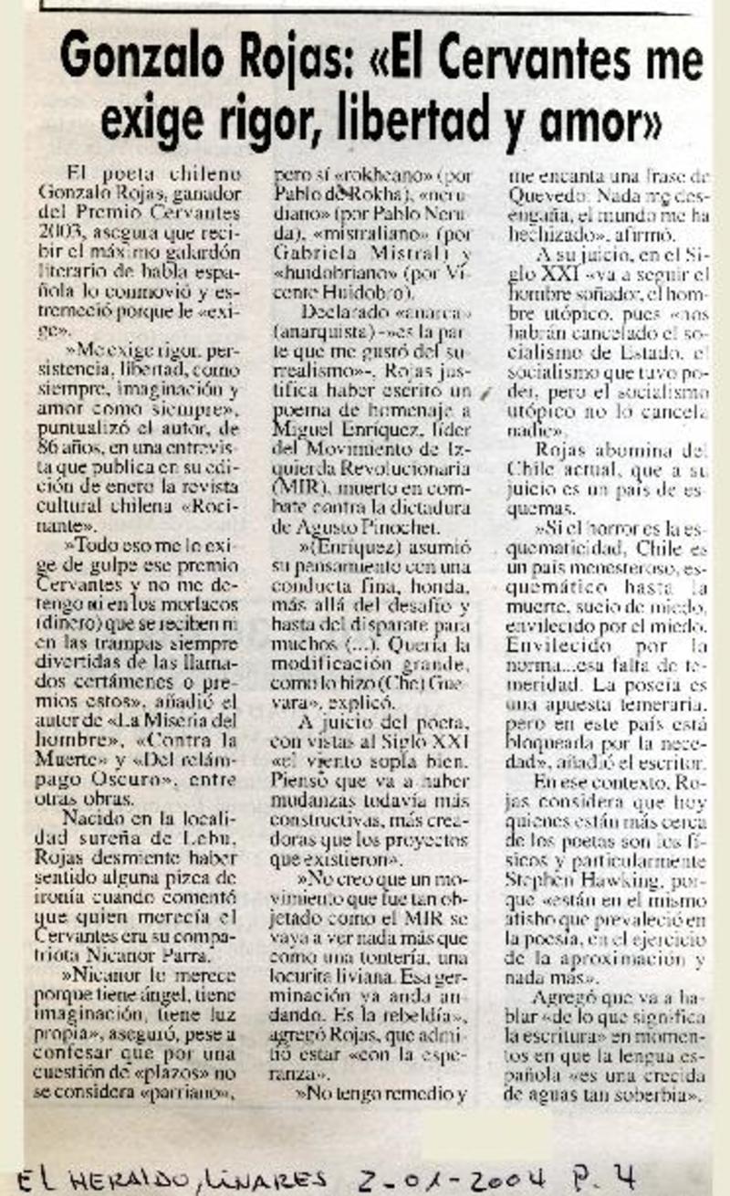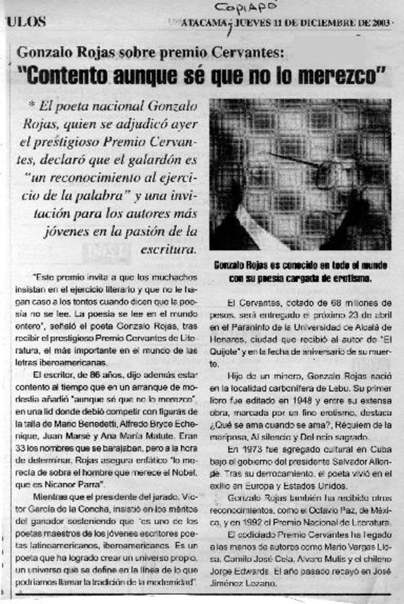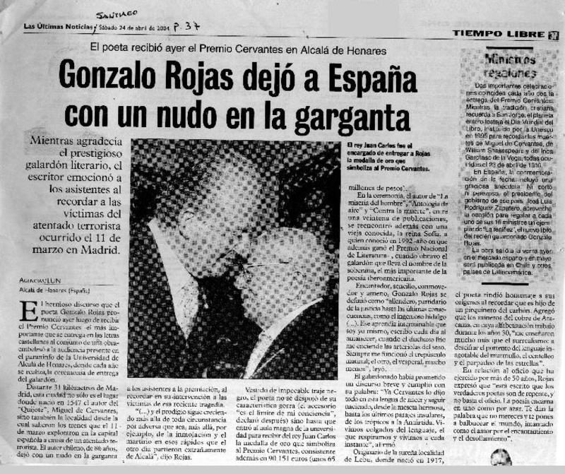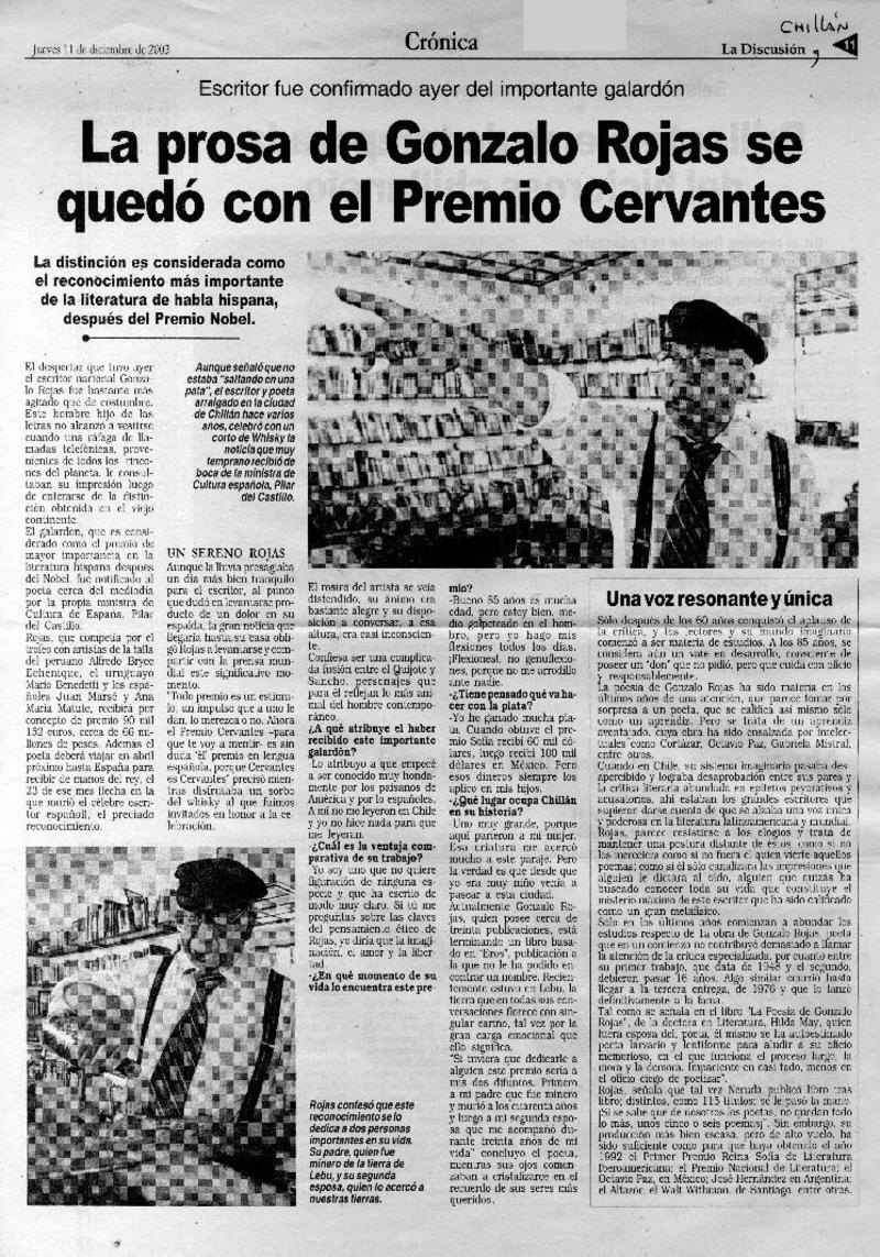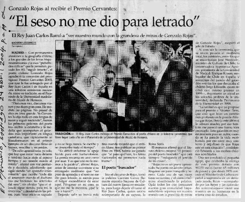 Rojas ganó el Premio Cervantes de Literatura. [artículo]