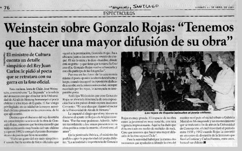 Weinstein sobre Gonzalo Rojas: "tenemos que hacer una mayor difusión de su obra". [artículo]