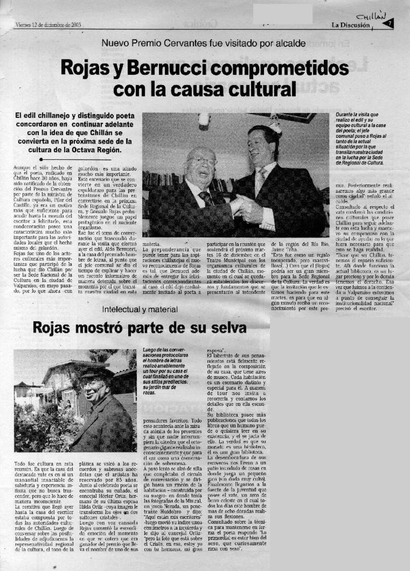 Rojas y Bernucci comprometidos con la causa cutural. [artículo]