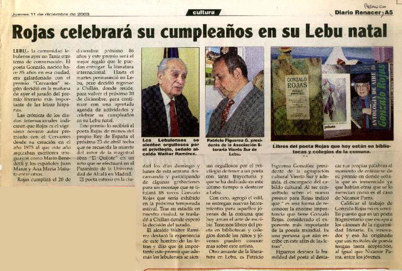Rojas celebra su cumpleaños en su lebu natal. [artículo]