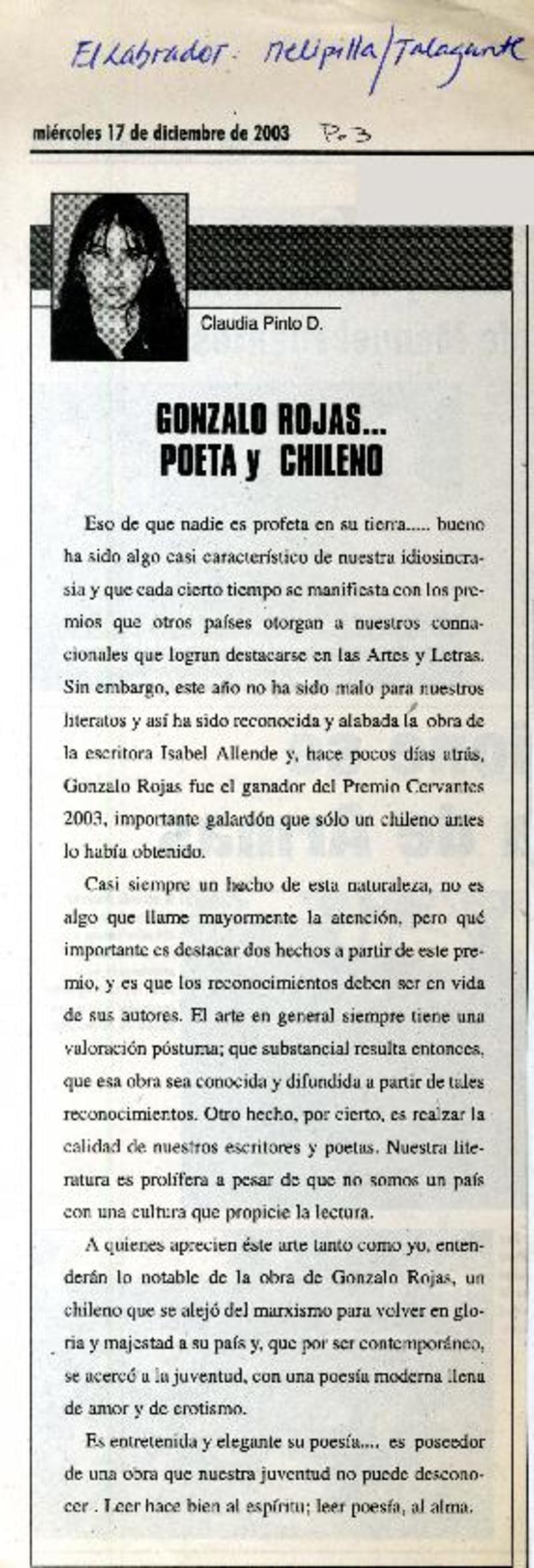 Autores chilenos - Rojas, Gonzalo