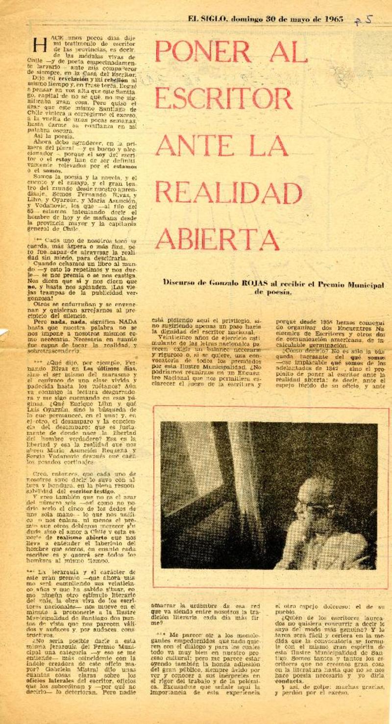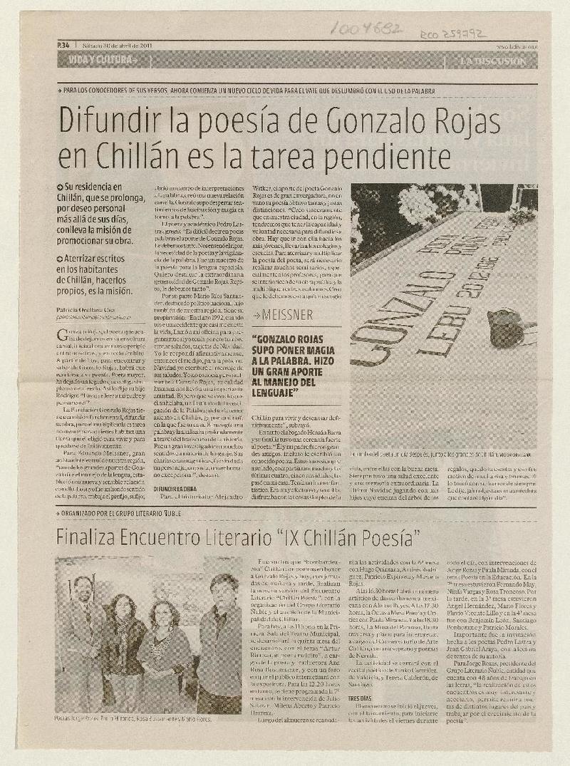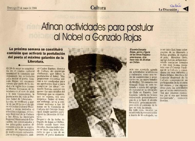 Afinan actividades para postular al Nobel a Gonzalo Rojas [artículo]