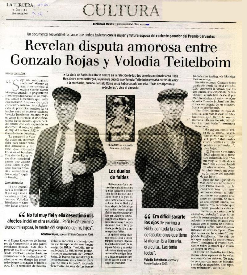 Revelan disputa amorosa entre Gonzalo Rojas y Volodia Teitelboim [artículo] Rodrigo González M.