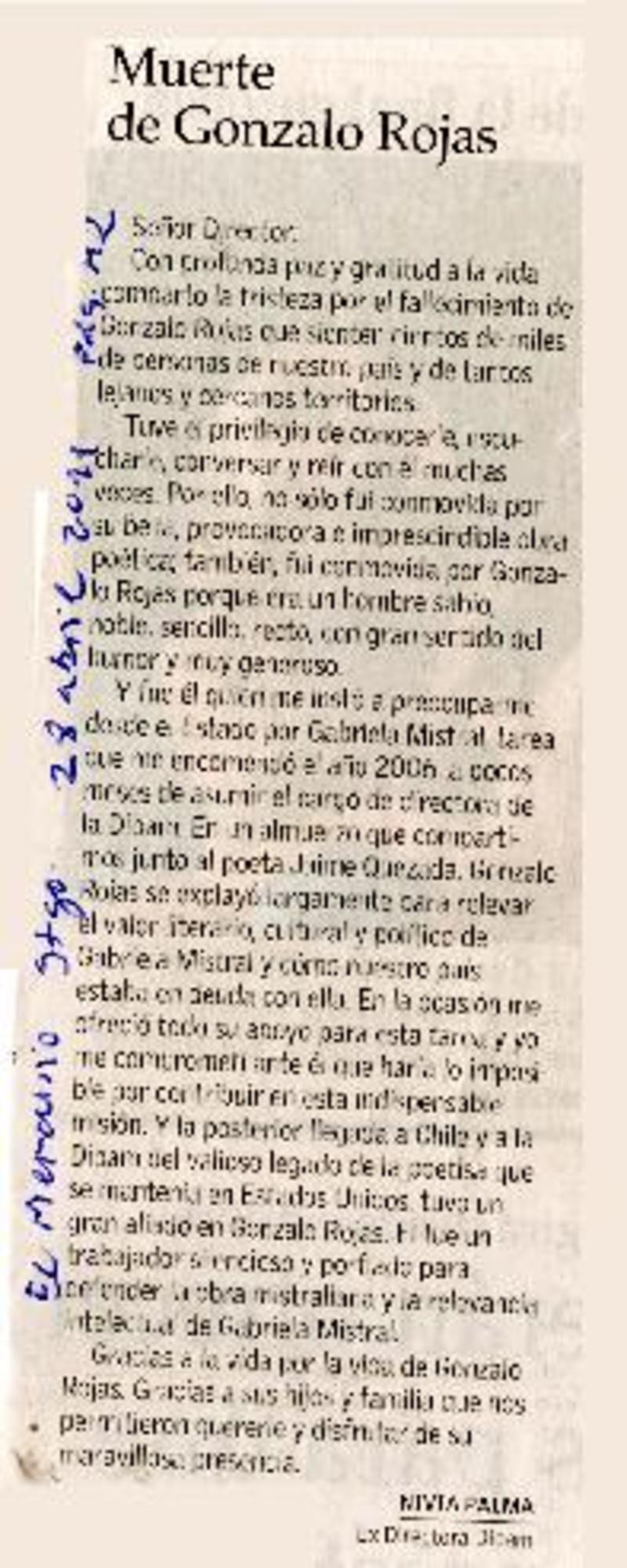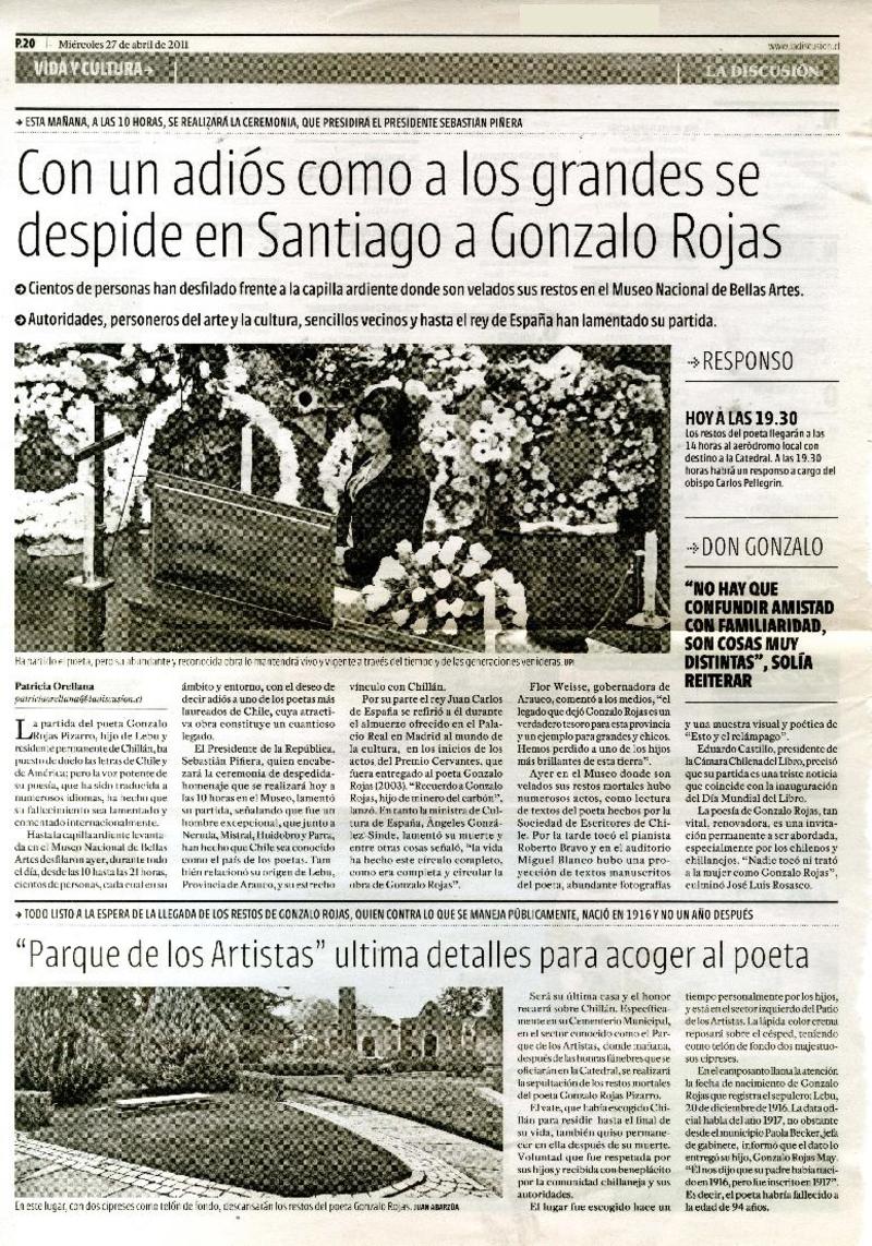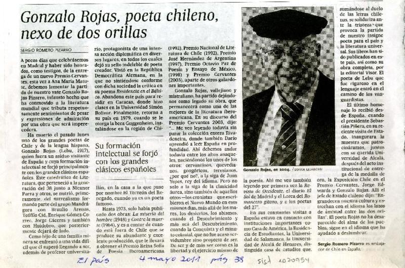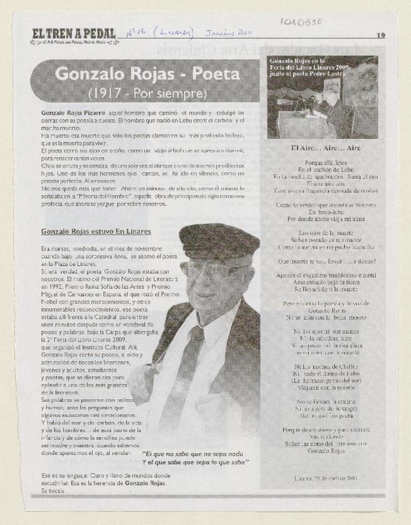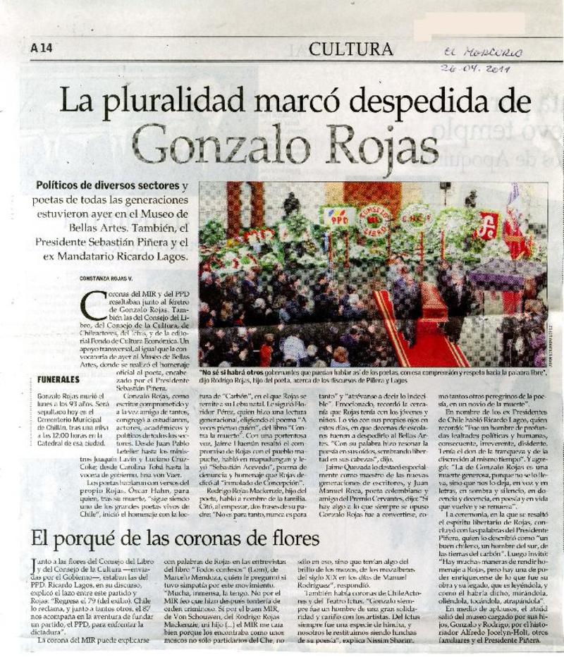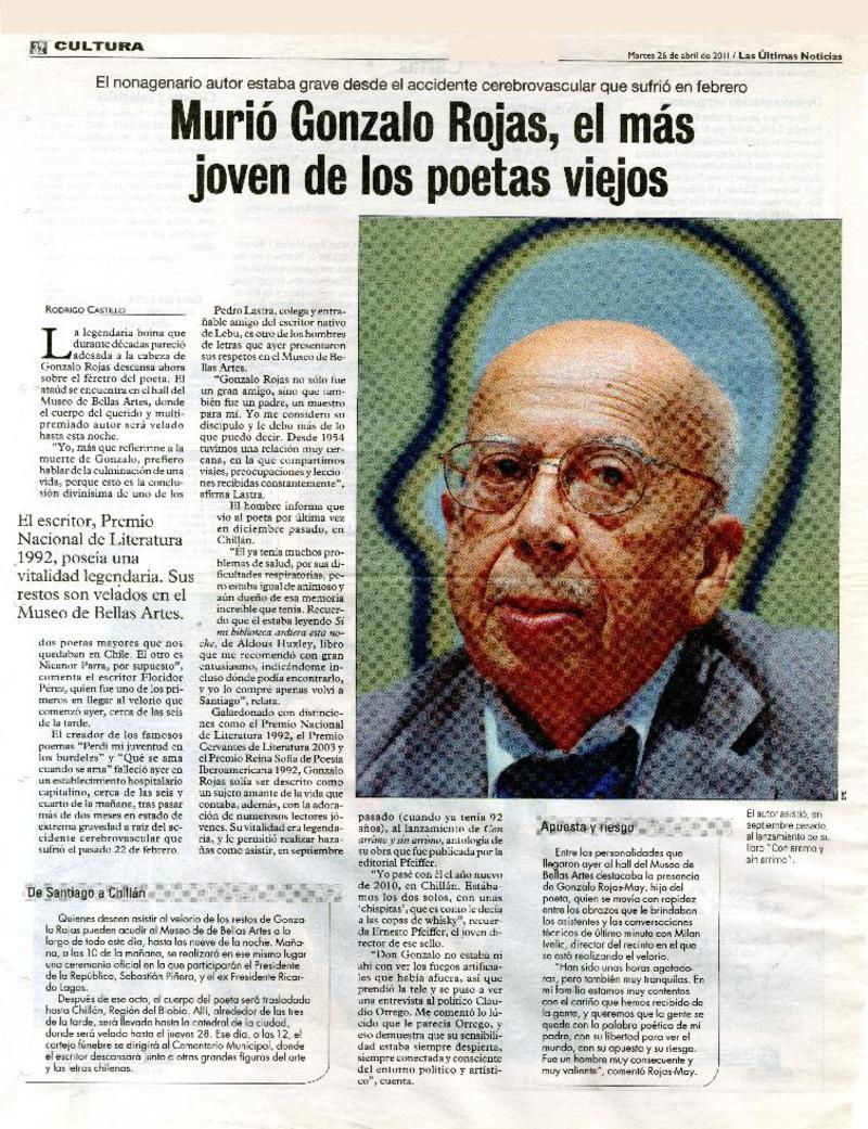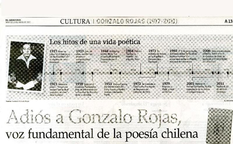 Adiós a Gonzalo Rojas, voz fundamental de la poesía chilena [artículo] Constanza Rojas Valdés.
