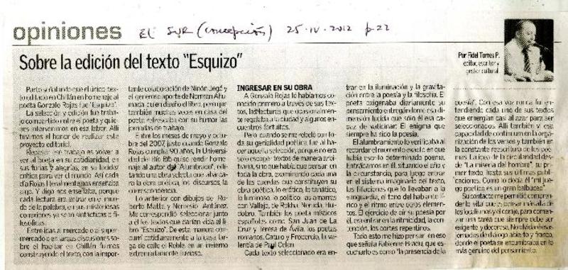 Sobre la edición del texto "Esquizo" [artículo] Fidel Torres P.
