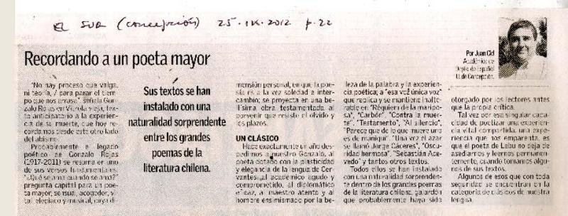 Autor penquista publica libro sobre G. Rojas [artículo].