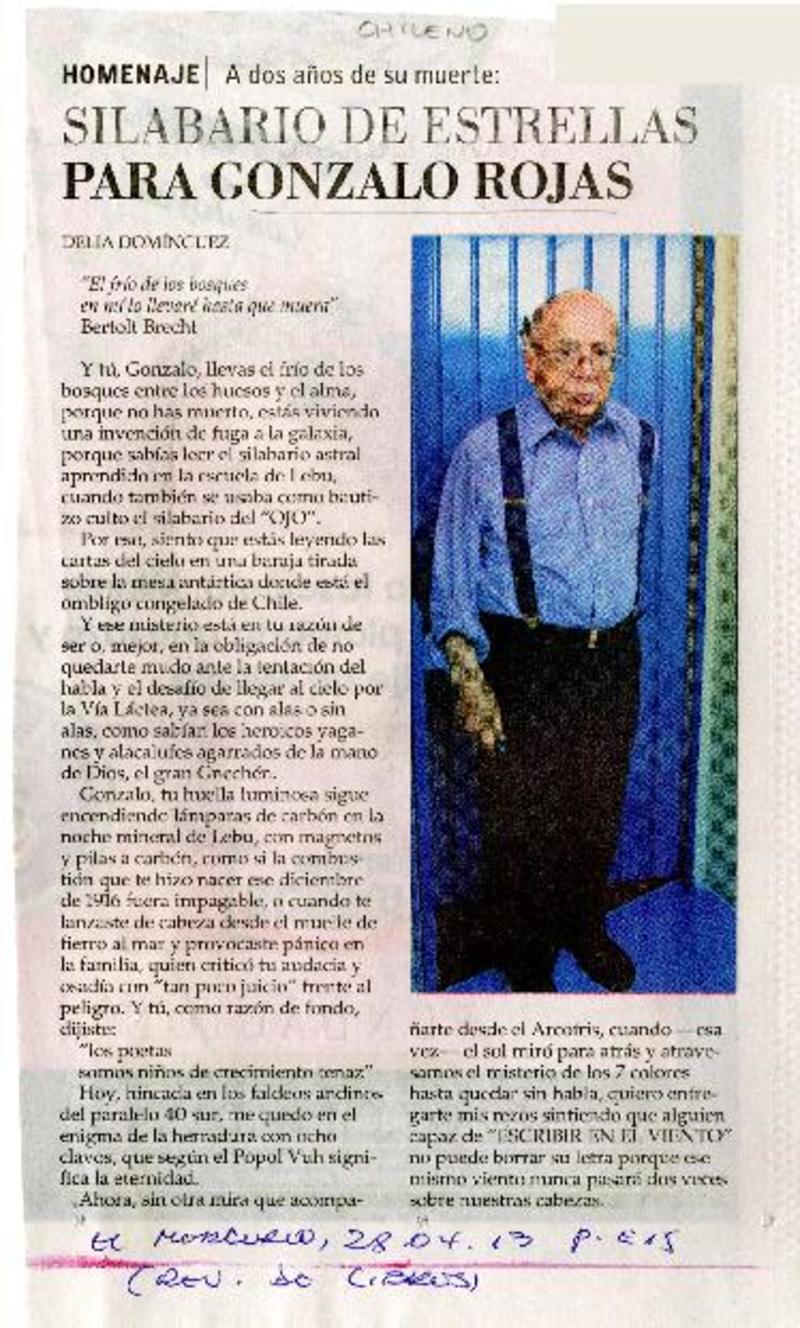 Silabario de estrellas para Gonzalo Rojas [artículo] Delia Domíguez.
