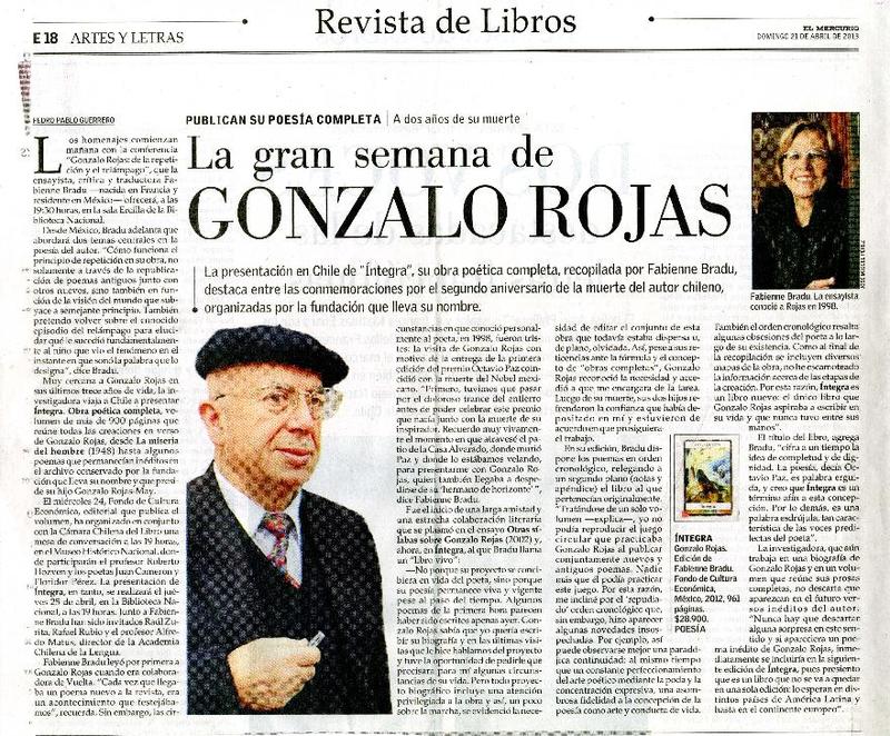 Rojas, Gonzalo - Autoras francesas - Autores chilenos - Bradu, Fabienne