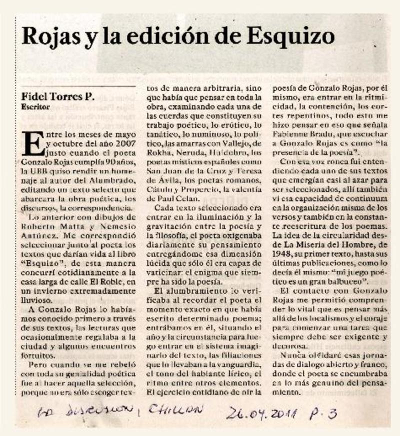 Rojas y la edición de esquizo [artículo] Fidel Torres Pedrero.