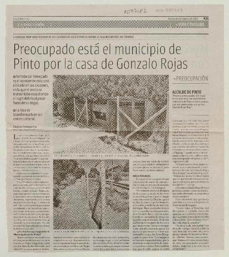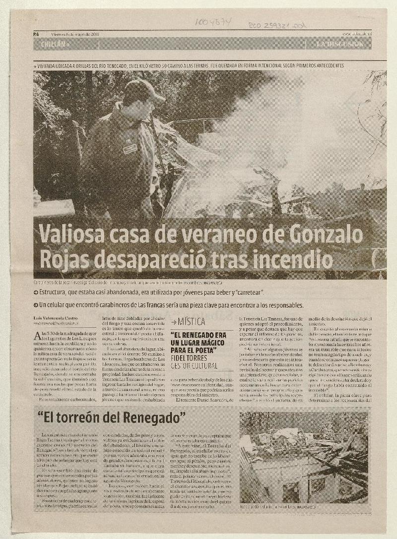 Valiosa casa de veraneo de Gonzalo Rojas desapareció tras incendio [artículo] Luis Valenzuela Castro.