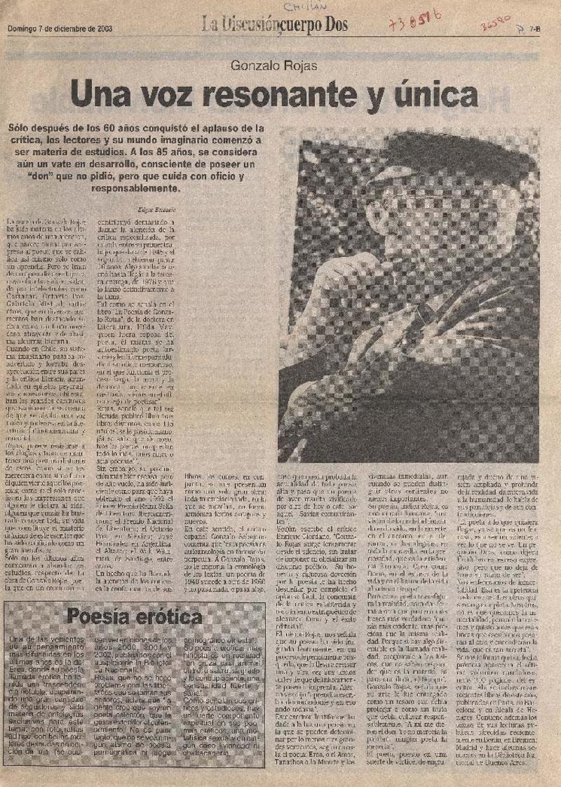 Una voz resonante y única [artículo] Edgar Brizuela.