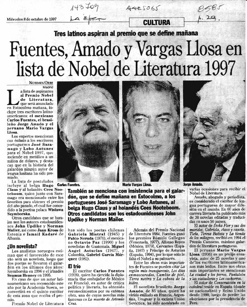 Autores peruanos - Roa Bastos, Augusto - AUTORES PARAGUAYOS - Paso, Fernando del - Vargas Llosa, Mario - Autores mexicanos - Fuentes, Carlos