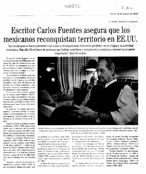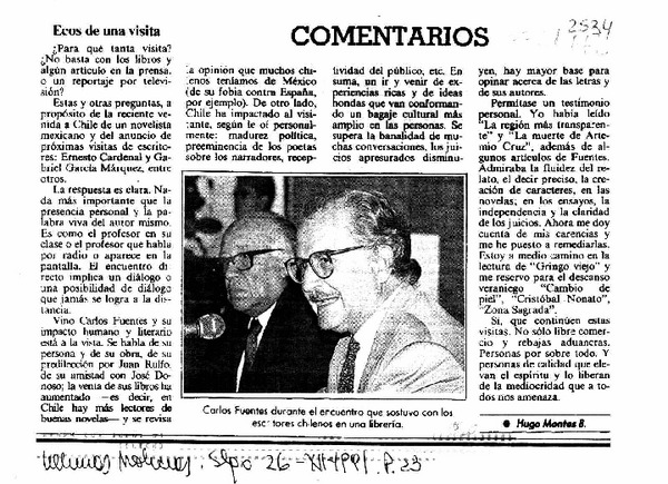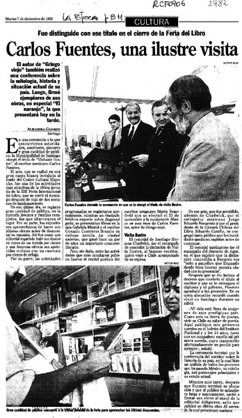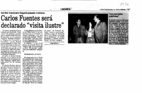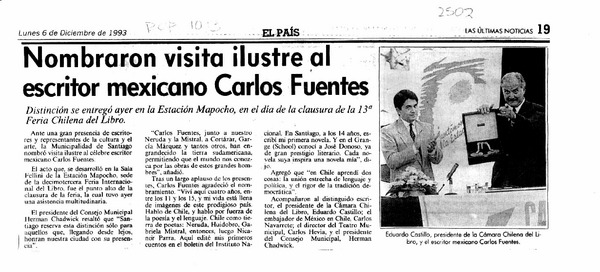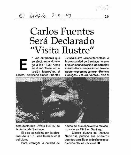 Nombraron visita ilustre al escritor mexicano Carlos Fuentes [artículo].