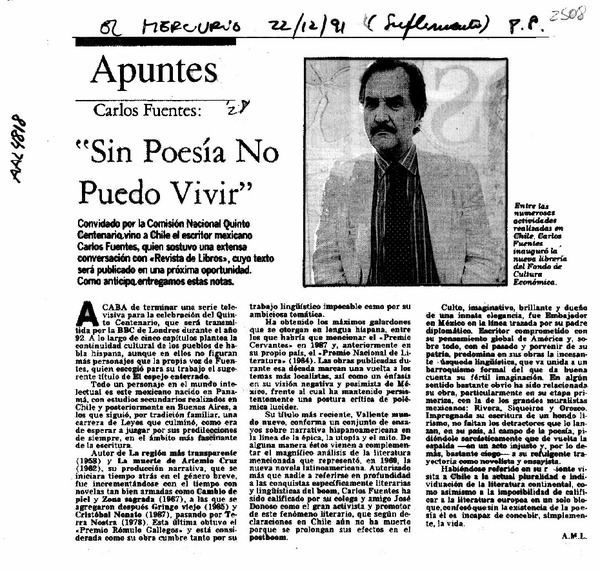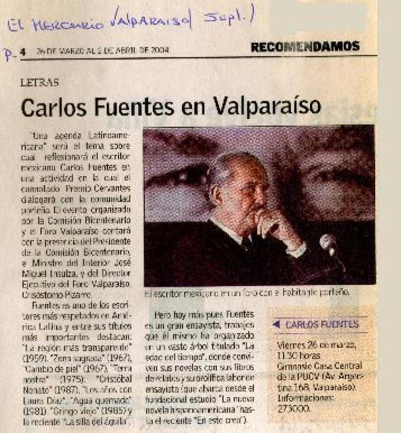 Carlos Fuentes en Chile [artículo] P.P.G.
