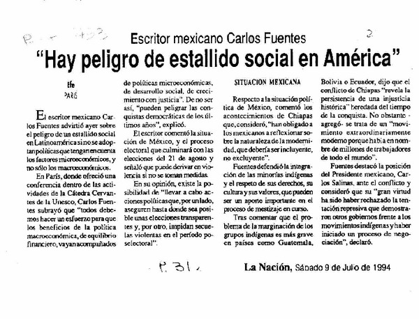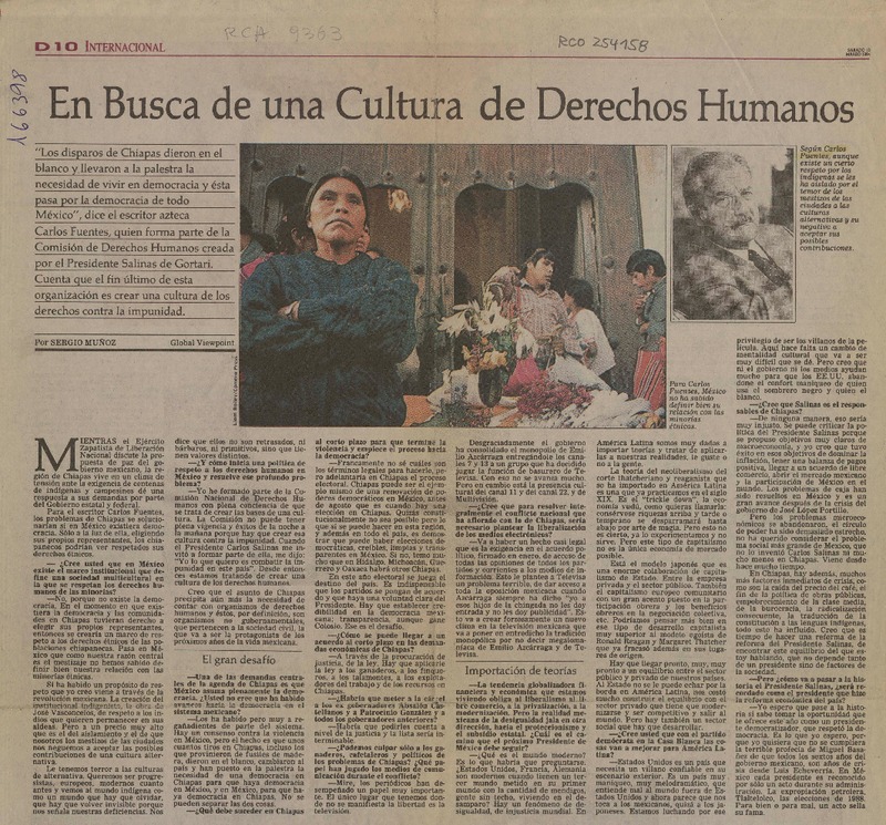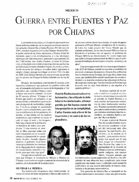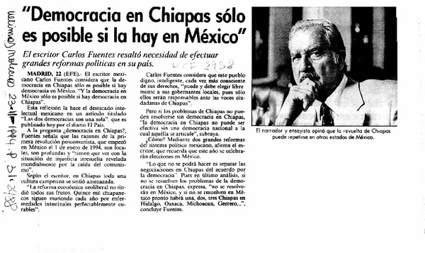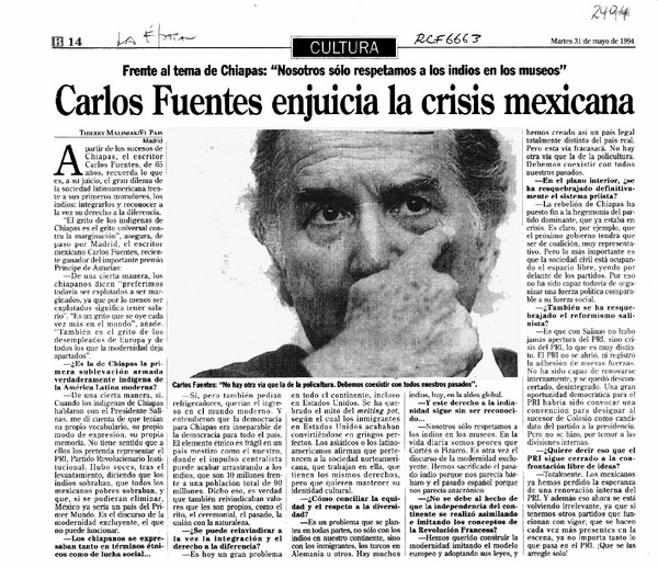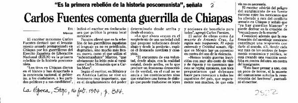 Carlos Fuentes comenta guerrilla de Chiapas [artículo].