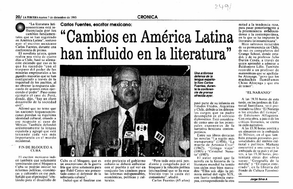 "Cambios en América Latina han influido en la literatura" [artículo] Jorge Silva A.