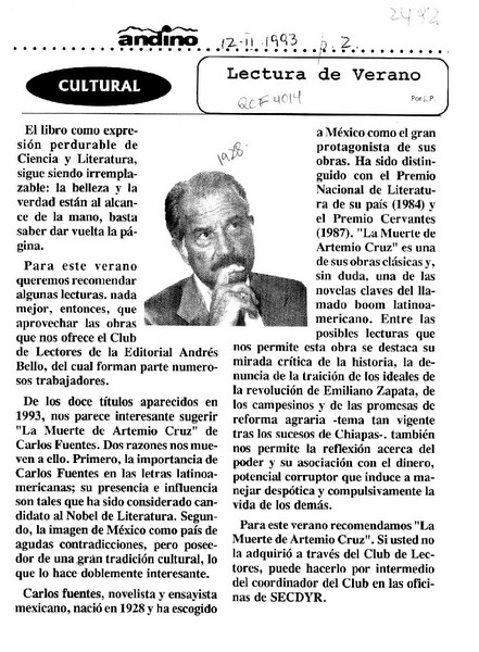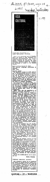"La muerte de Artemio Cruz" [artículo] Luis Paz.