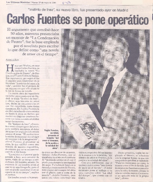 Carlos Fuentes: "<<Instinto de Inez>> es una historia de amor". [artículo]