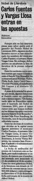 Carlos Fuentes escribirá para diario colombiano. [artículo]