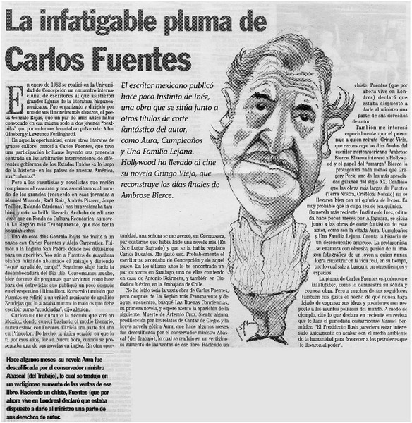 Carlos Fuentes, una ilustre visita [artículo] Alejandra Gajardo.