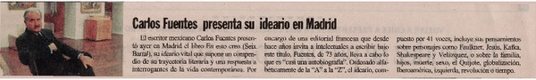 Carlos Fuentes presenta su ideario en Madrid [artículo]