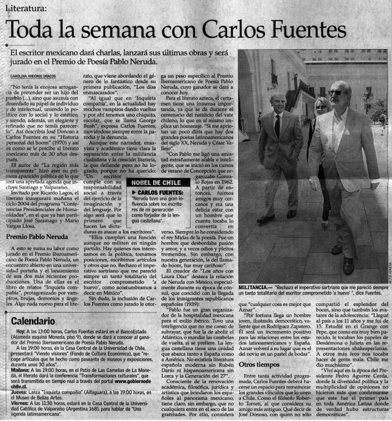 Toda la semana con Carlos Fuentes [artículo] Carolina Andonie Dracos.