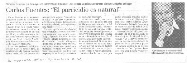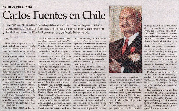 Carlos Fuentes vendrá a Chile en marzo. [artículo]