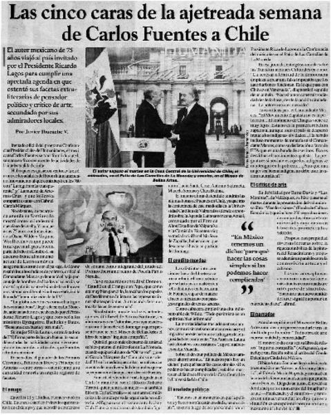 Las cinco caras de la ajetreada semana de Carlos Fuentes a Chile [artículo] Javier Ibacache V.