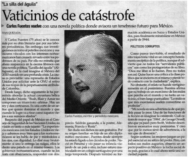 Vaticinios de catástrofe Carlos Fuentes con una novela política donde avisadora un tenebroso futuro para México [artículo]