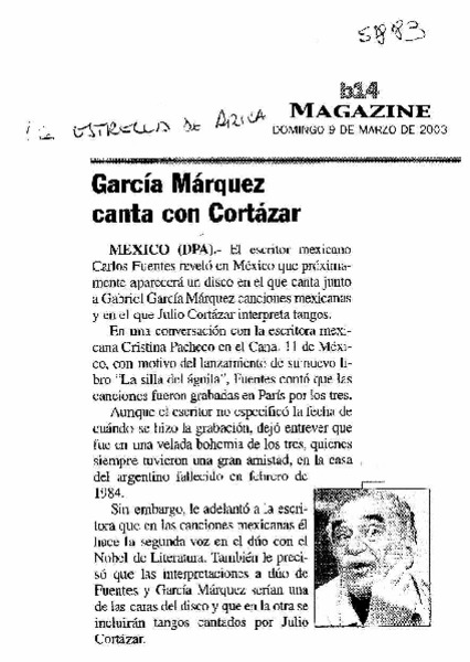 Ministro mexicano censura obras de Carlos Fuentes y García Márquez [artículo] A.G.B.