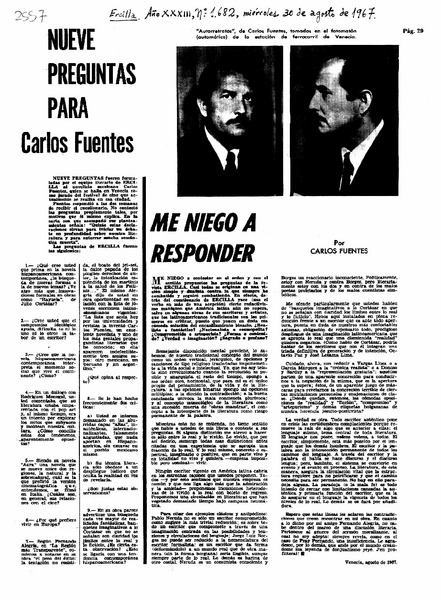 Nueve preguntas para Carlos Fuentes. [artículo]