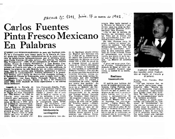 Carlos Fuentes pinta fresco mexicano en palabras. [artículo]