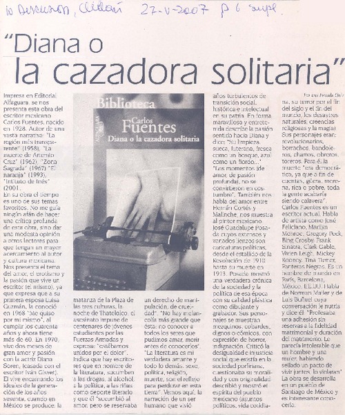 Autores chilenos - Fuentes, Carlos - Diana o la cazadora solitaria