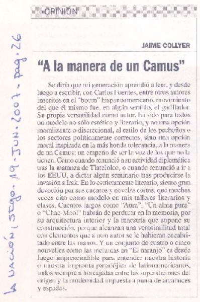 "A la manera de un Camus" [artículo] Jaime Collyer.