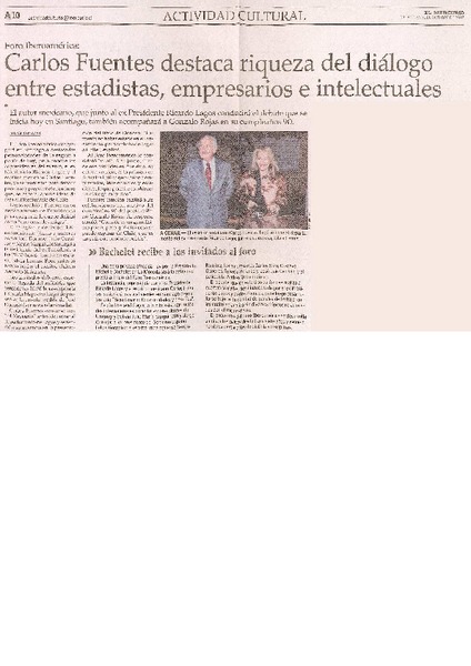 Carlos Fuentes destaca riqueza del diálogo enre estadistas, empresarios e intelectuales [artículo] Gonzalo Salazar.