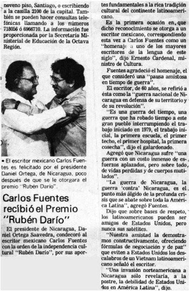 Carlos Fuentes recibió el Premio "Rubén Darío" [artículo].