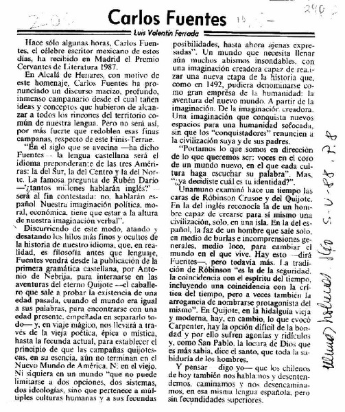 Carlos Fuentes [artículo] Luis Valentín Ferrada.