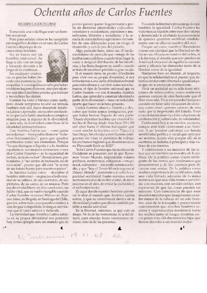 Ochenta años de Carlos Fuentes [artículo] Ricardo Lagos Escobar.