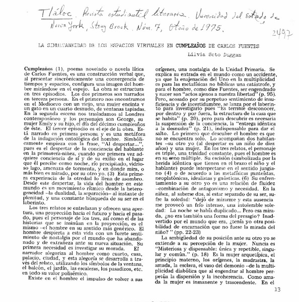 La Simultaneidad de los espacios virutales en cumpleaños de Carlos Fuentes [artículo] Lilvia Soto Duggan.