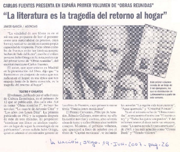 "La literatura es la tragedia del retorno al hogar" [artículo] Javier García.