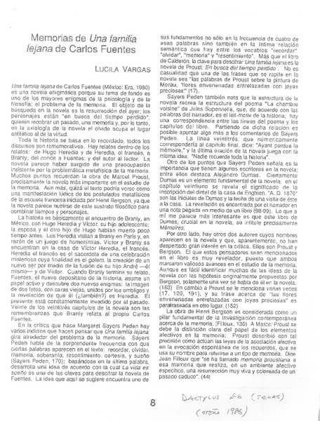 Memorias de una familiia lejana de Carlos Fuentes [artículo] Lucila Vargas.