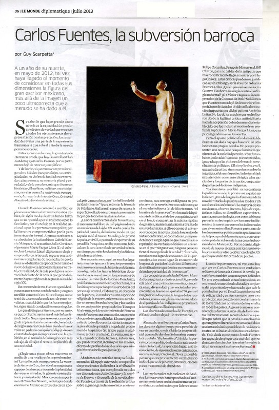 Carlos Fuentes, La subversión barroca [artículo] Guiy Scarpetta