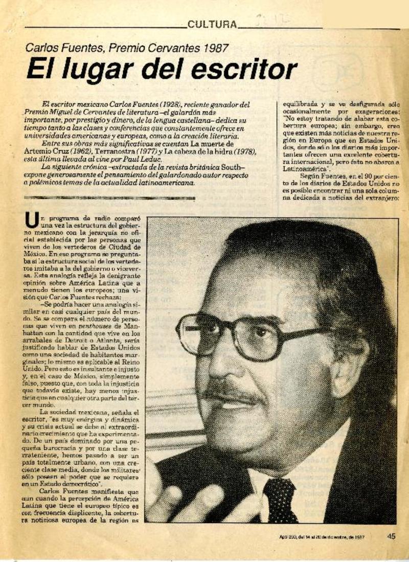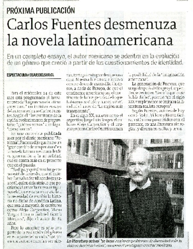 Carlos Fuentes desmenuza la novela latinoamericana [artículo]