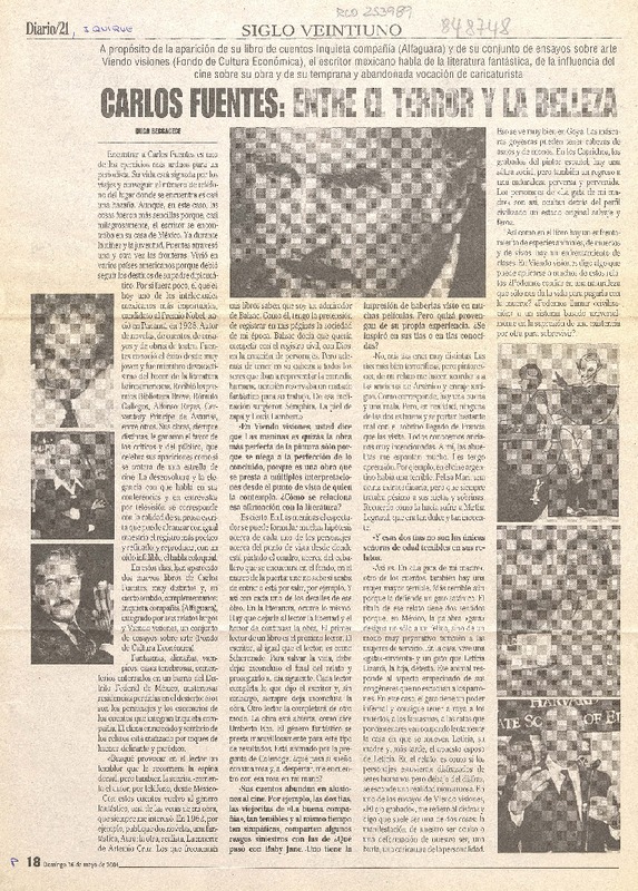 Carlos Fuentes : entre el terror y la belleza (entrevista) [artículo] Hugo Beccacece.