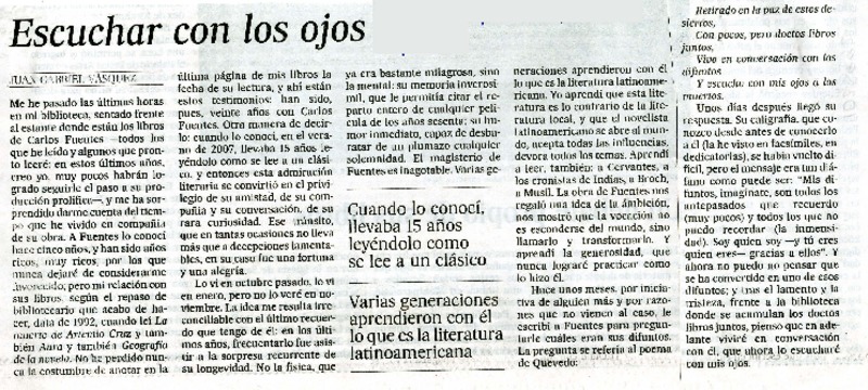 Tarde de homenajes y recuerdos para escritor mexicano Carlos Fuentes [artículo] Verónica San Juan.