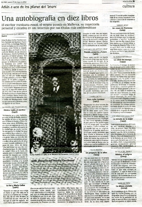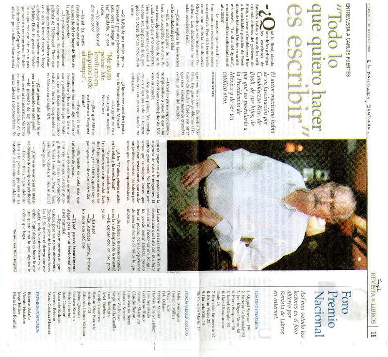 Juan Goytisolo evoca a Carlos Fuentes al recibir el Formentor (entrevista) [artículo] Rosa Mora.