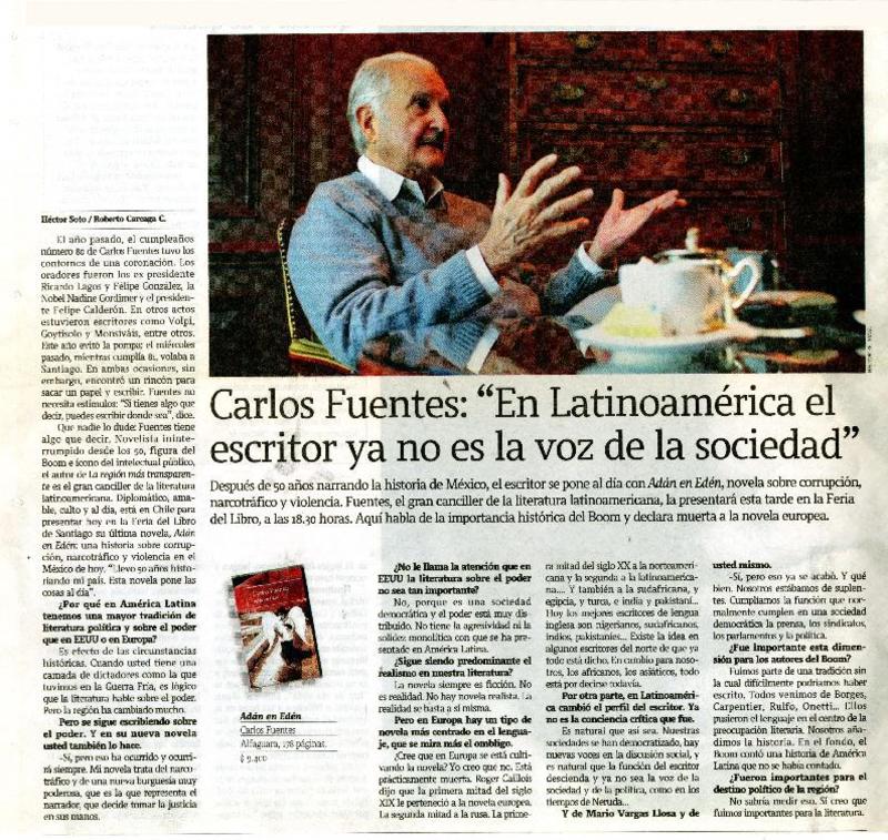 Carlos Fuentes: "En Latinoamérica el escritor ya no es la voz de la sociedad" (entrevista) [entrevista] [artículo] : Roberto Careaga C.