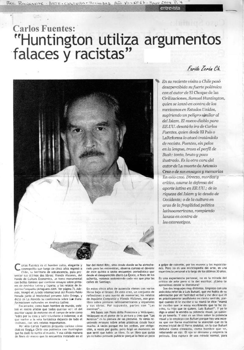 Huntington utiliza argumentos falaces y racistas" [artículo] Faride Zerán Ch.